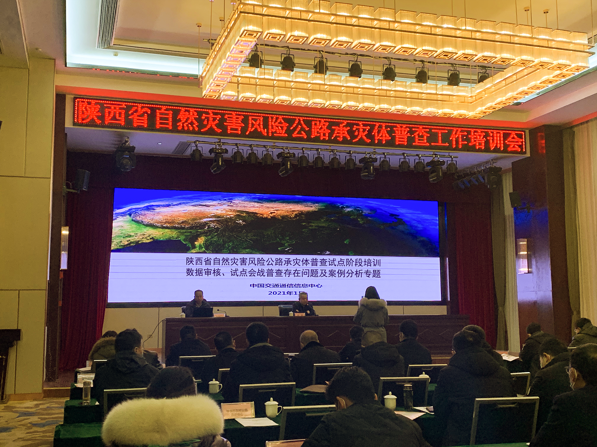 1月5日,召开“陕西省自然灾害综合风险公路承灾体普查培训会”,陕西省交通厅公路处芦军处长主持并发表讲话,中国交通通信信息中心和国交空间信息技术(北京)有限公司三位技术专家讲解了“技术指南”、“常见问题及案例分析”三个专题报告。参会代表反响热烈,认真学习讲解内容,深入探讨业务关键点。